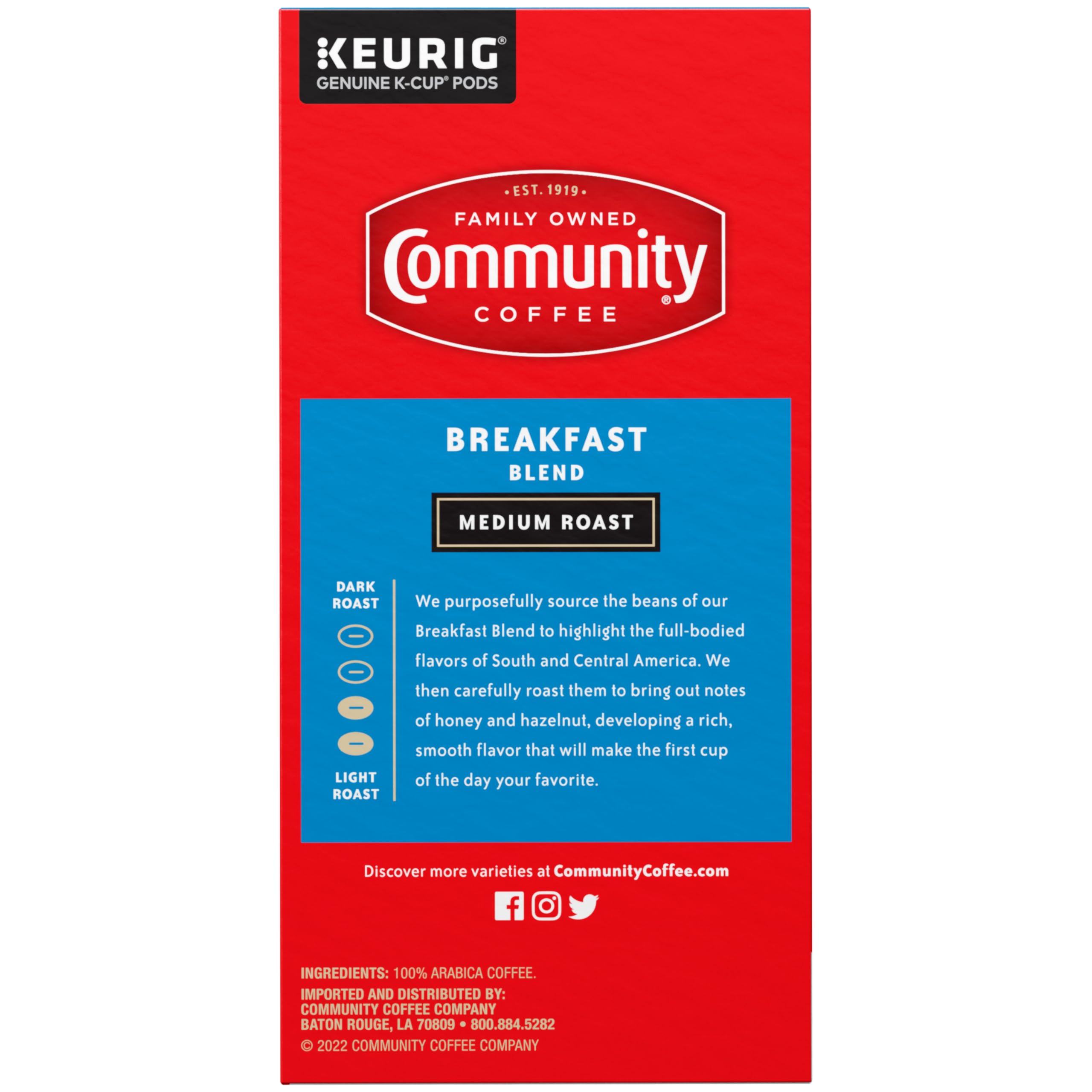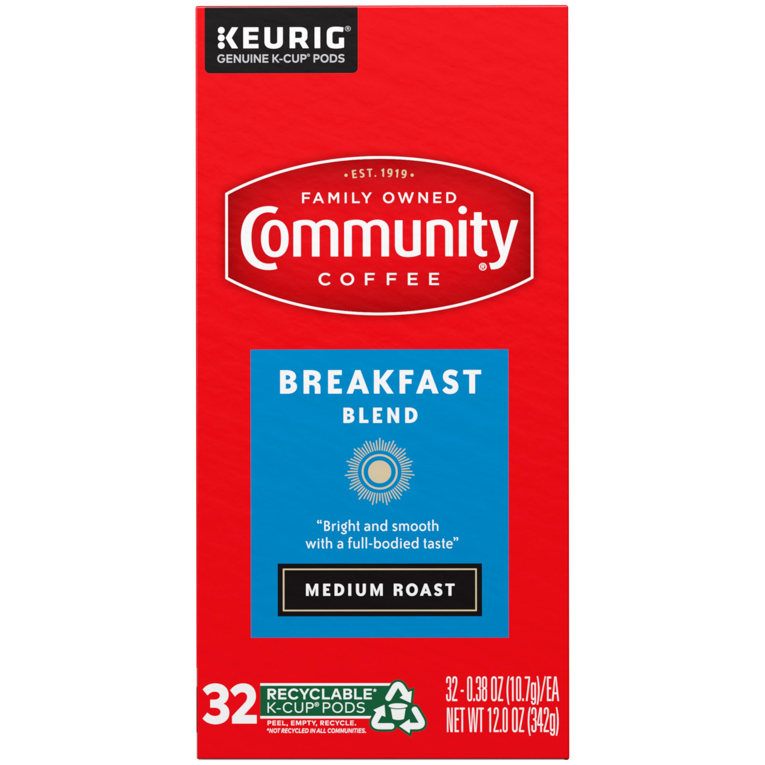 Community Coffee Breakfast Blend, Medium Roast, Single-Serve Keurig K-Cup Pods, 32 Count (Pack of 4)