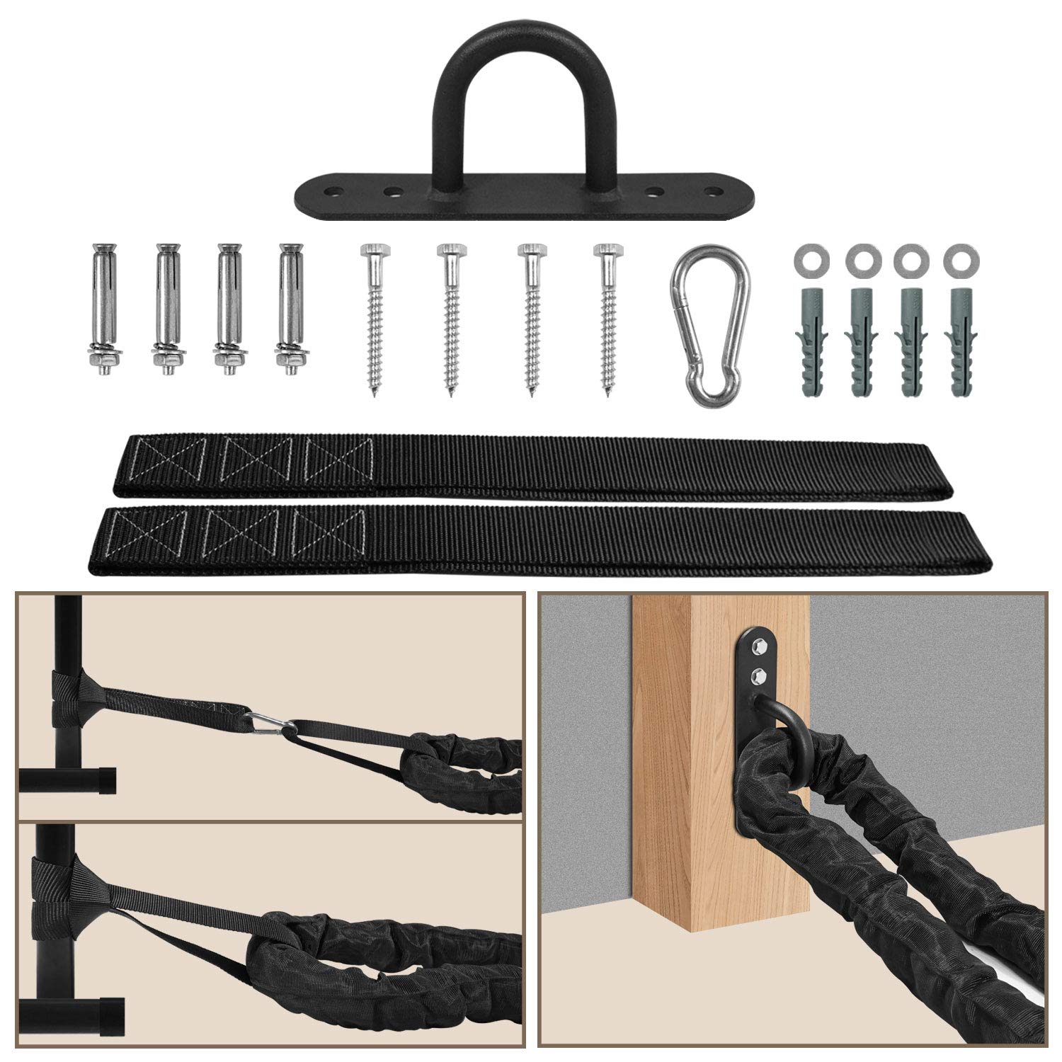 Yes4All Battle Rope with Protective Cover – Steel Anchor & Strap Included - Poly Dacron 1.5in - 40ft