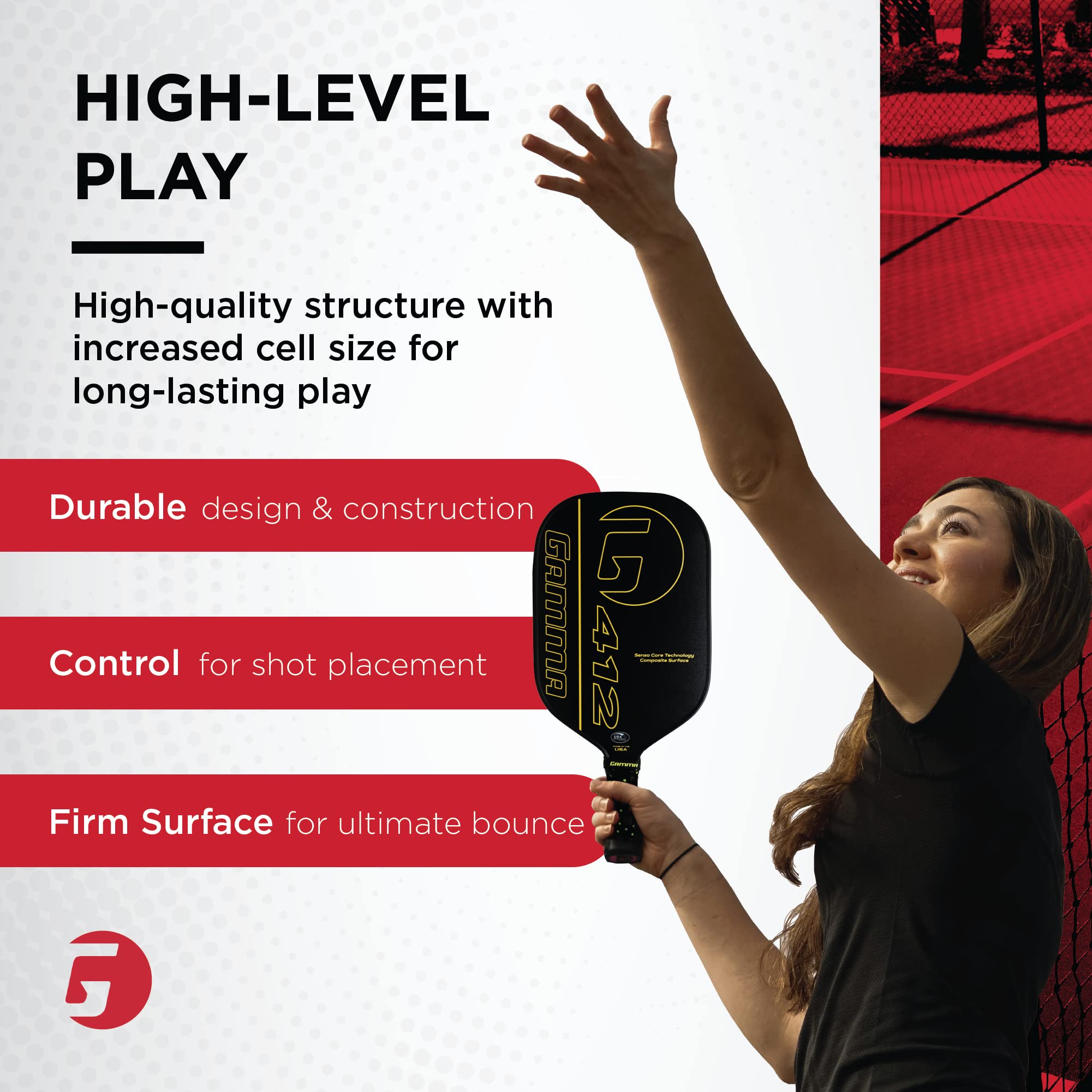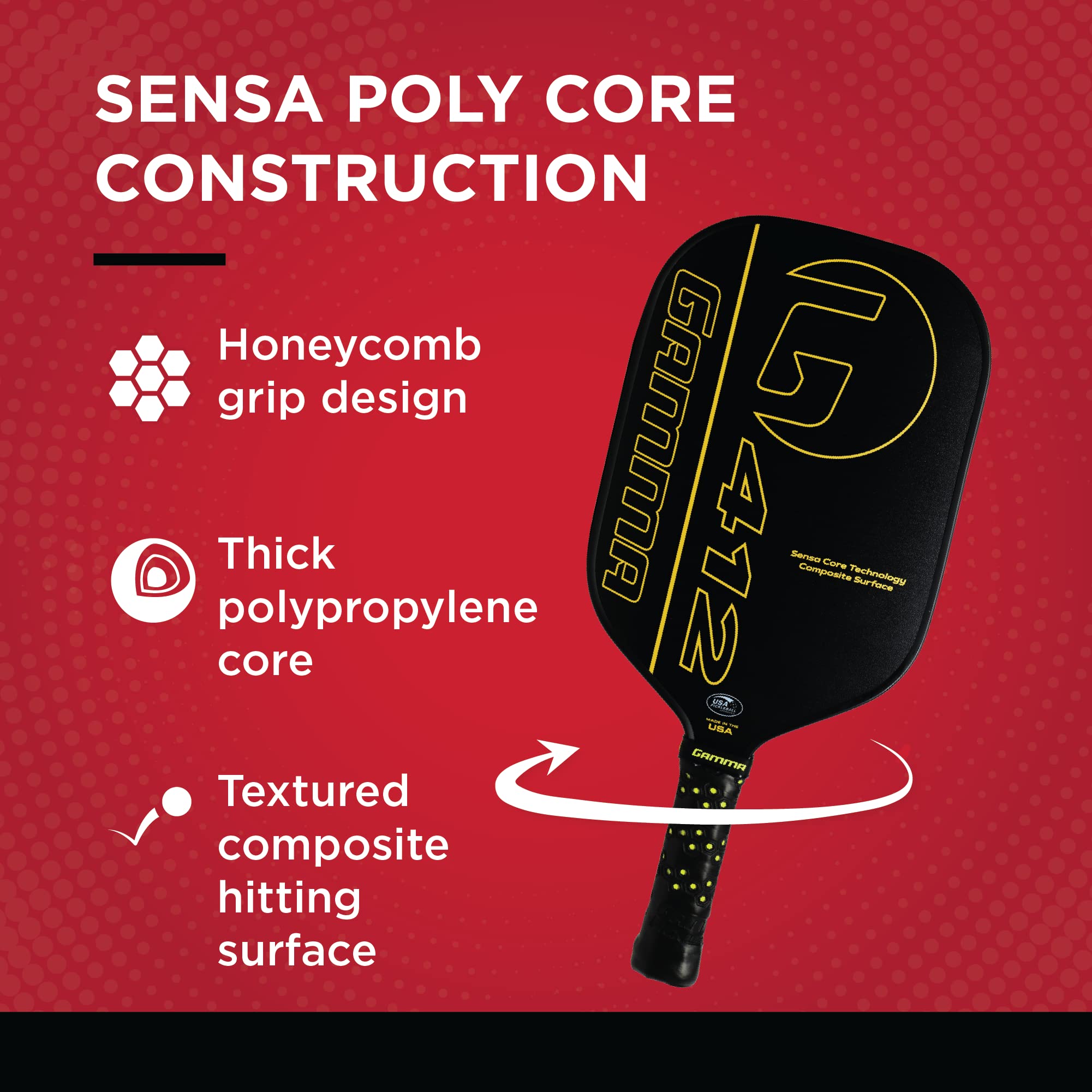 Gamma Sports Graphite-Face Adult Pickleball Paddle with Extended Honeycomb-Grip Handle, 412 Textured