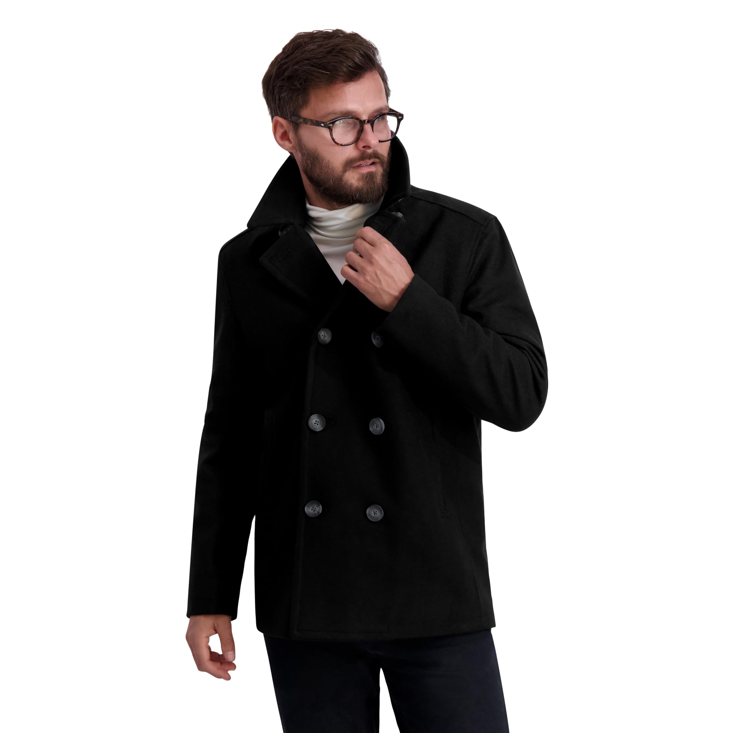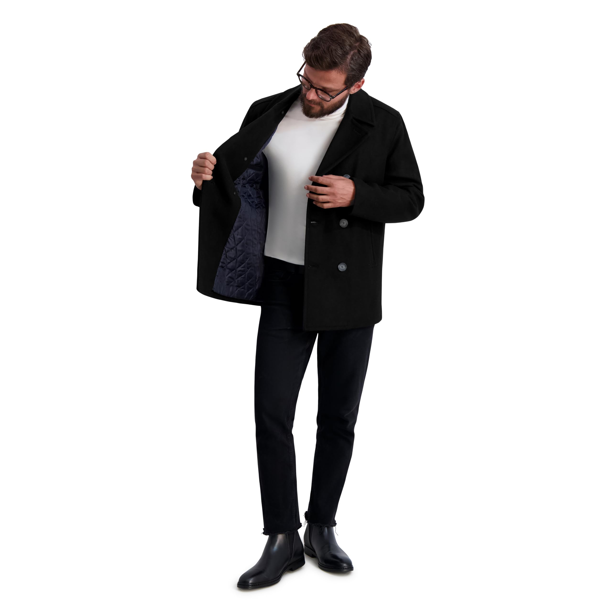 Nautica Men's Wool Blend Peacoat – Double-Breasted Winter Coat, Regular, Big & Tall Sizes, Black, LT