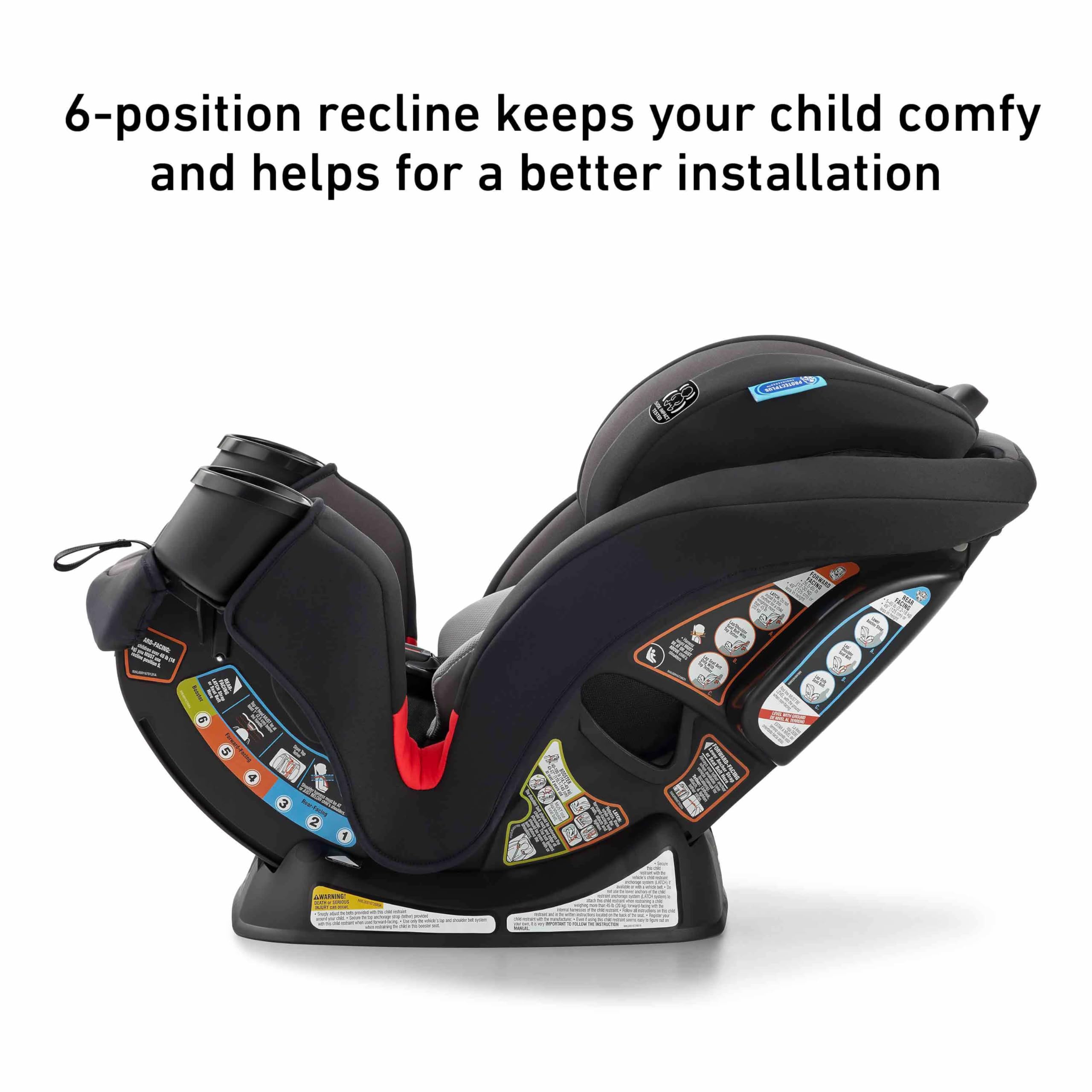 • - 6-position recline keeps your child comfy and helps for a better installation
