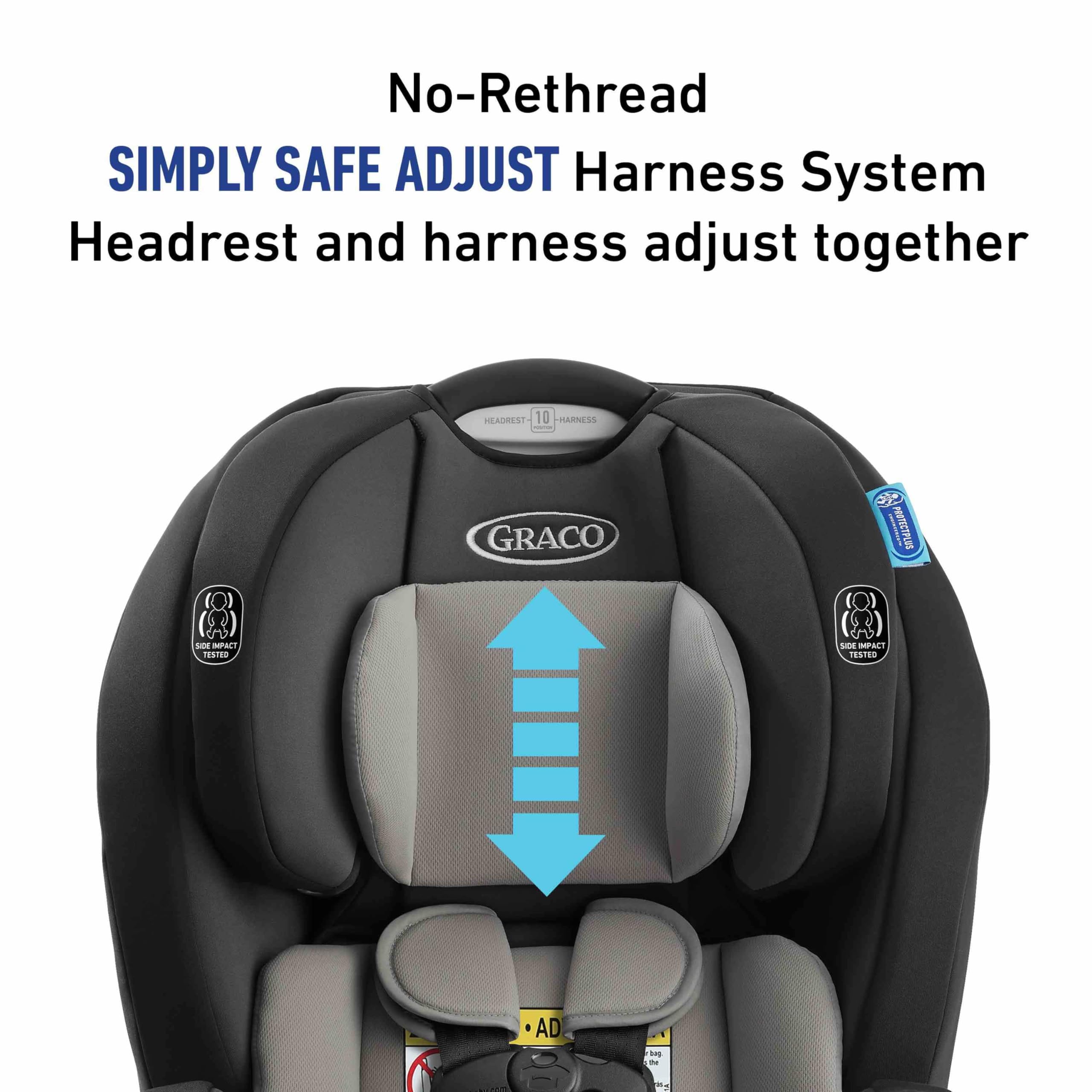 • - No-Rethread Simply Safe Adjust Harness System allows the headrest and harness to adjust together in one motion
