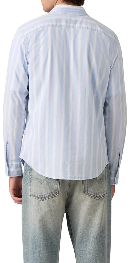 Levi's Men's Classic 1 Pocket Long Sleeve Button Up Shirt, (New) Kayden Stripe Chambray Blue, Medium