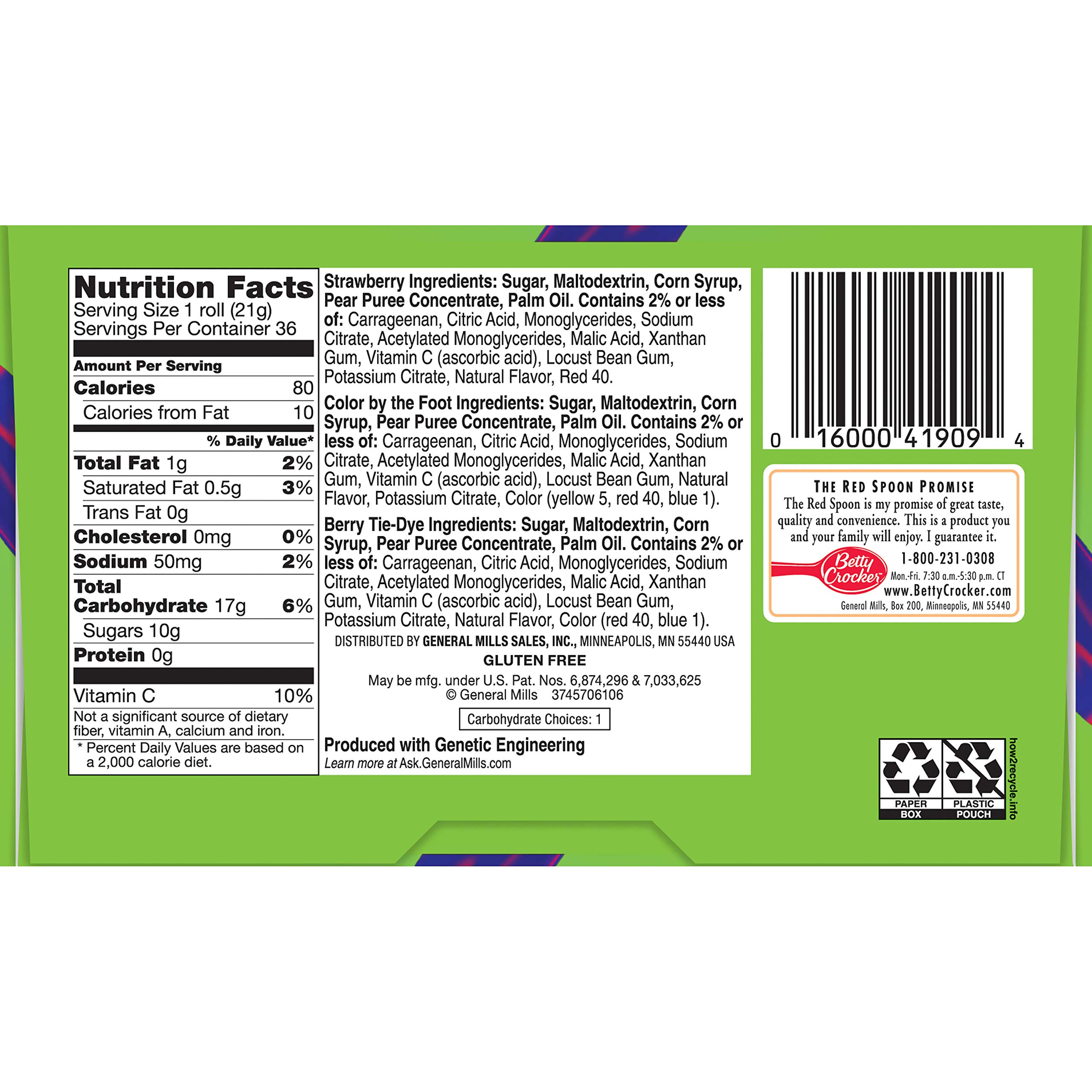 Betty Crocker Fruit By The Foot Strawberry/Berry Tie-Dye/Color By The Foot, 36 ct, 27 oz (Pack of 2)