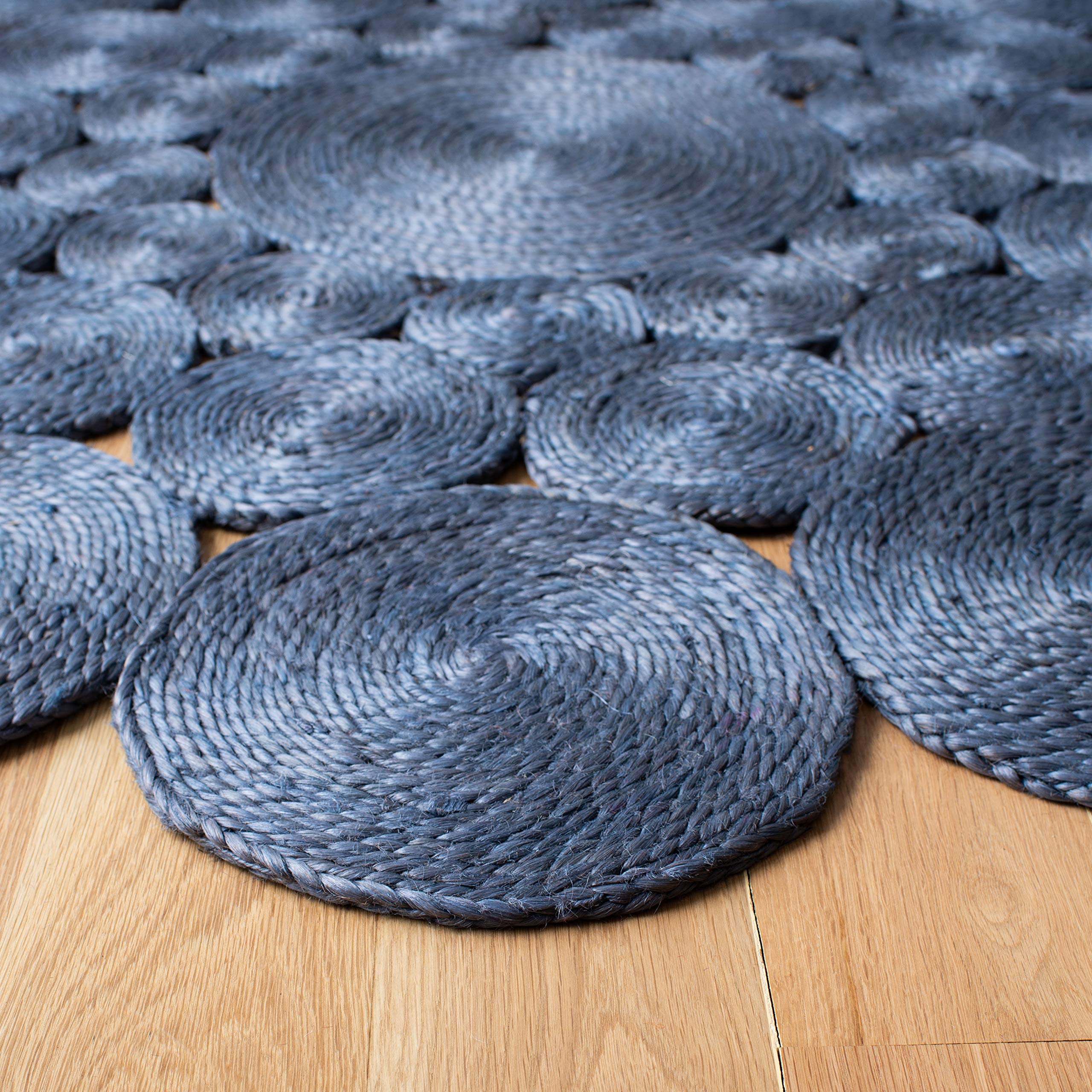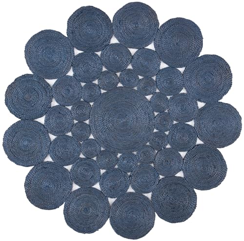 SAFAVIEH Natural Fiber Round Collection 7' Round Navy NF363N Handmade Boho Charm Farmhouse Jute Area Rug