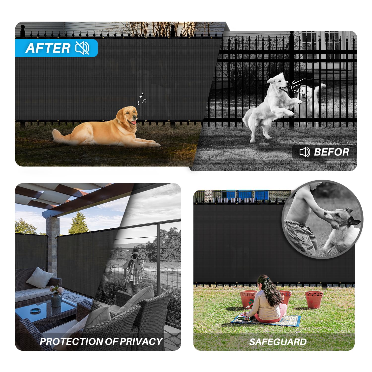 - - Inexpensive Privacy Solution: Block the view of neighbors, reduce pet noise, prevent wild animals from entering your yard, and protect the safety of young children. Privacy fence panels for the outside are great for condo/apartment balconies, porch railing, backyards and gathering areas, pools, and patios. Can also be used for residential, commercial, and construction sites