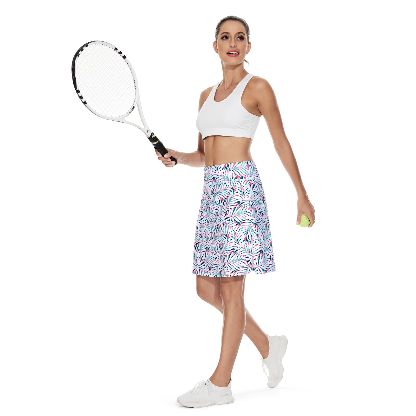 M MOTEEPI Womens Skorts Skirts Knee Length Long Athletic Tennis Golf Skirt High Waisted Pink Leaf XL