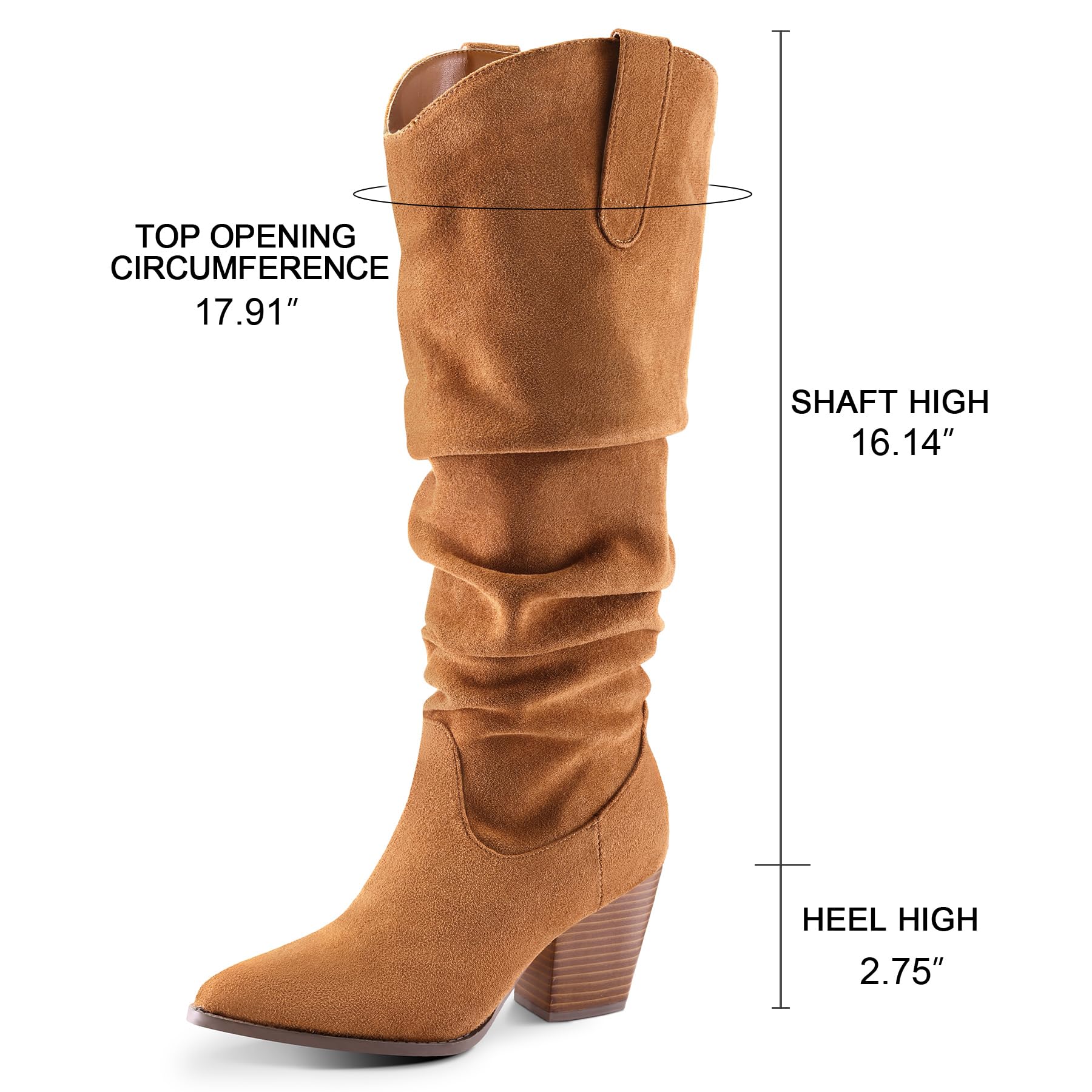 mysoft Women's Cowboy Knee-High Boots Pointed Toe Mid Chunky Heel Pull On Slouchy Boots with Zippers