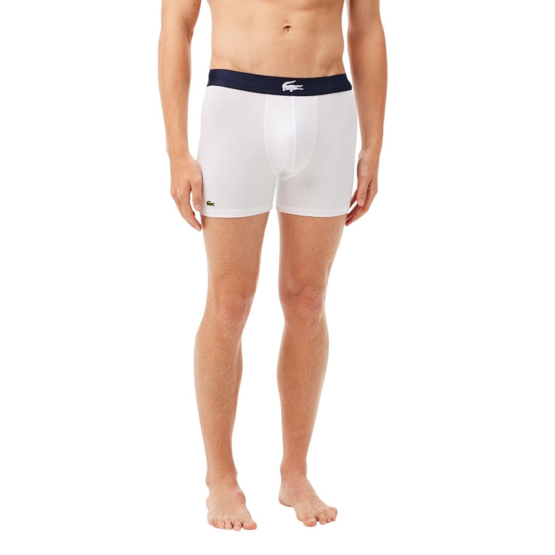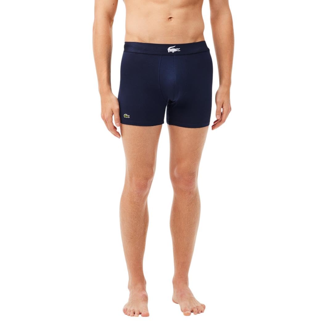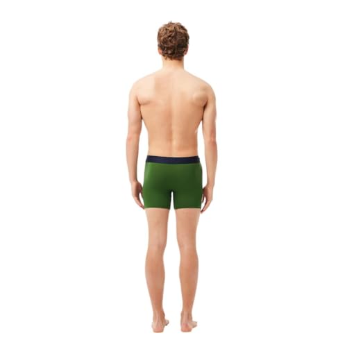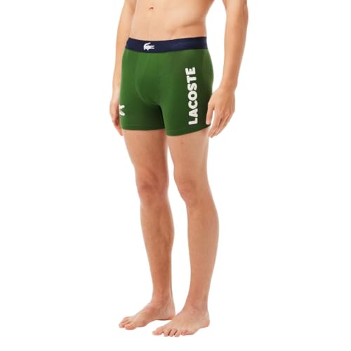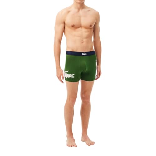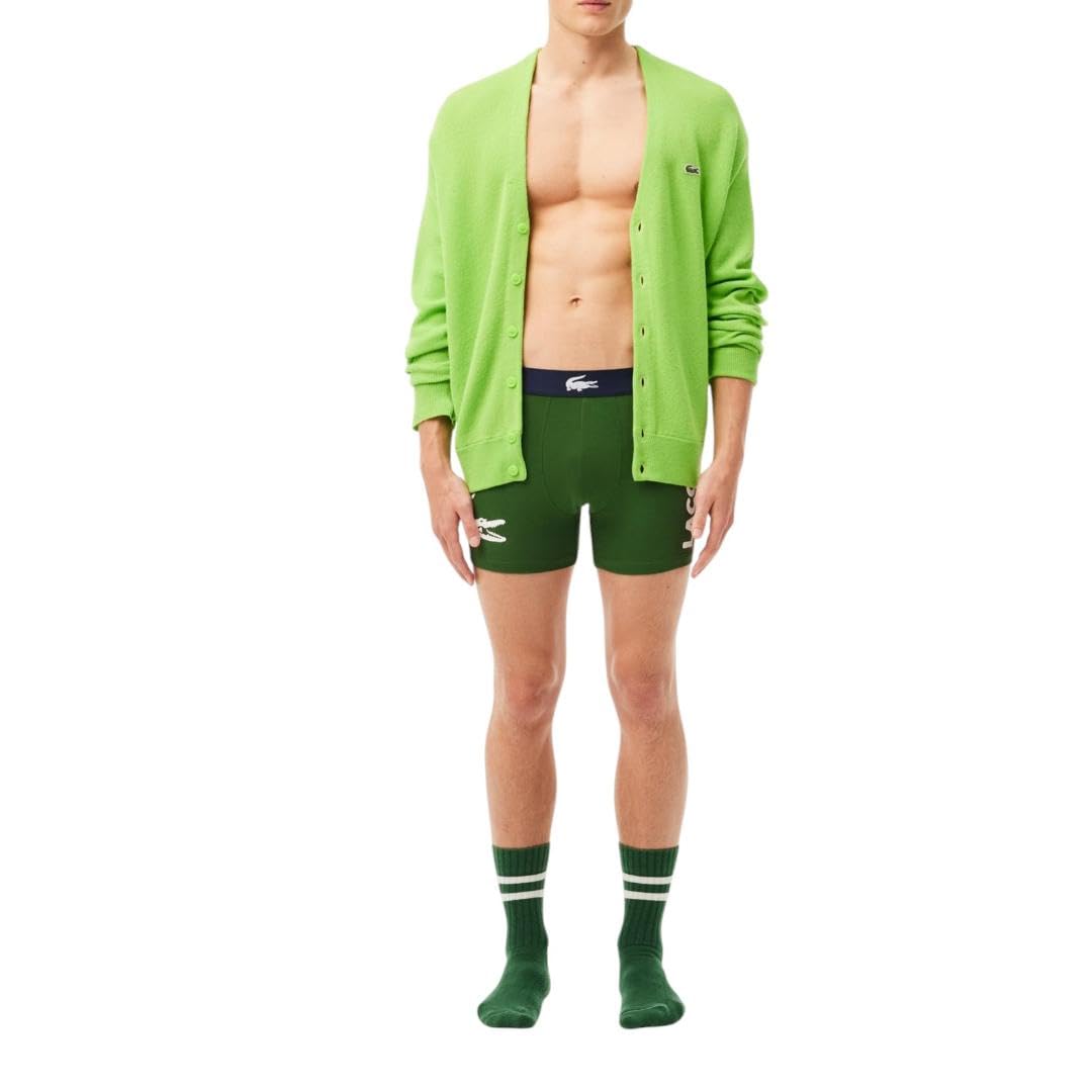 Lacoste Men's Cotton Stretch Big Croc Print Boxer Briefs, 3-pack, Dusty Olive/Navy Blue/White, Large