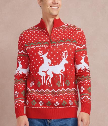 Tipsy Elves Men's Christmas Climax Sweater - Funny Humping Reindeer Ugly Christmas Sweater (XL3) Red