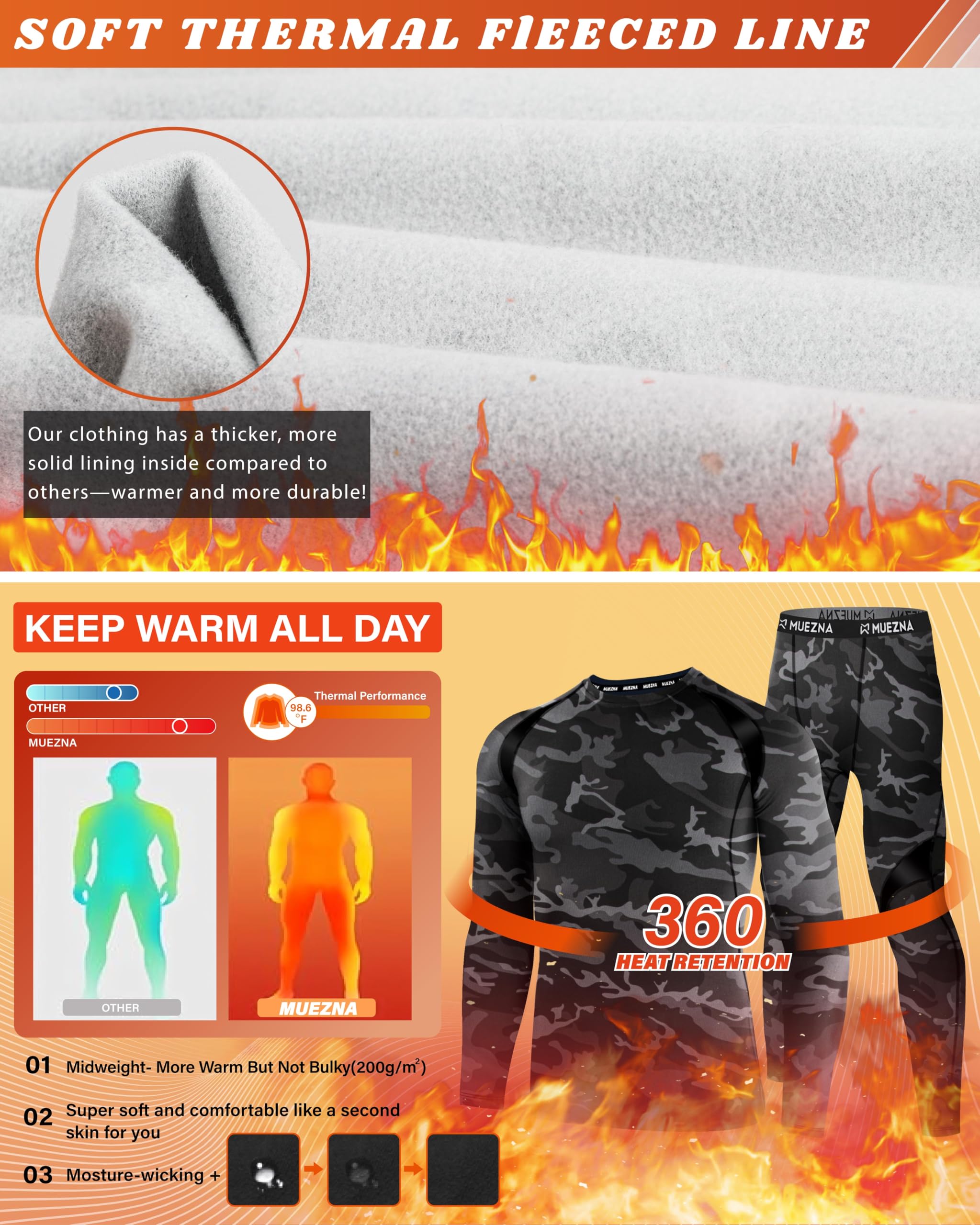 CL convallaria Thermal Underwear Long Johns Set Mens Winter Hunting Gear Sport Base Layer Bottom Top