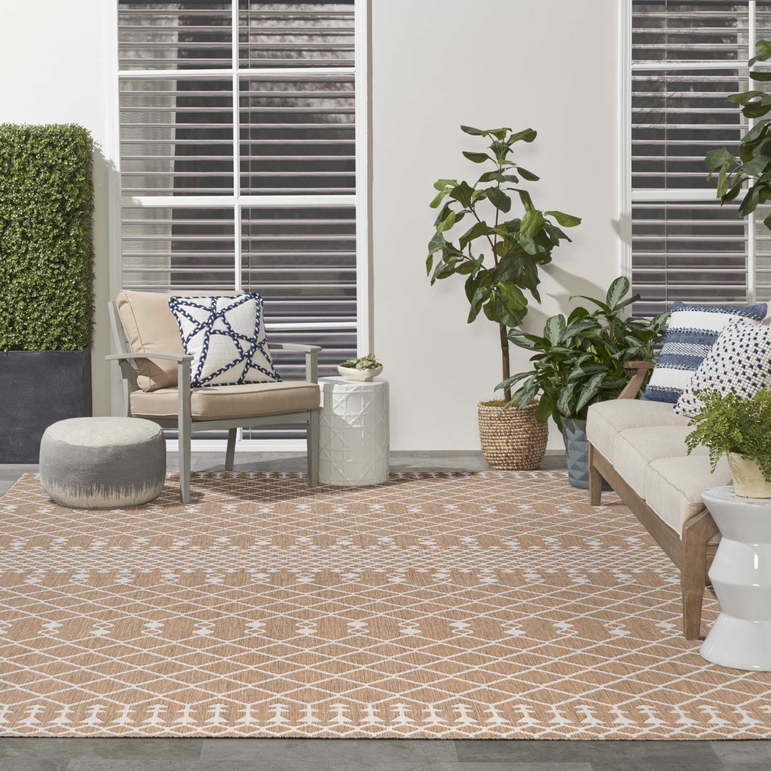 Unique Loom Outdoor Trellis Collection Area Rug - Trellis (Square 13' 0" x 13' 0", Aquamarine/ Gray)