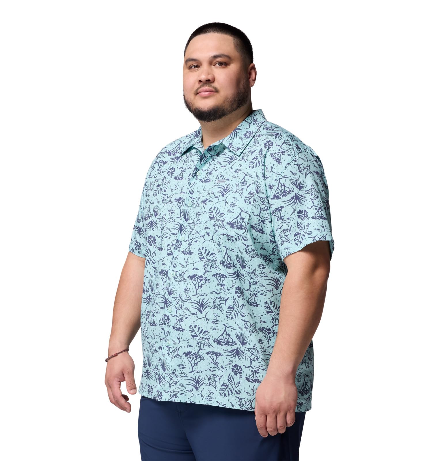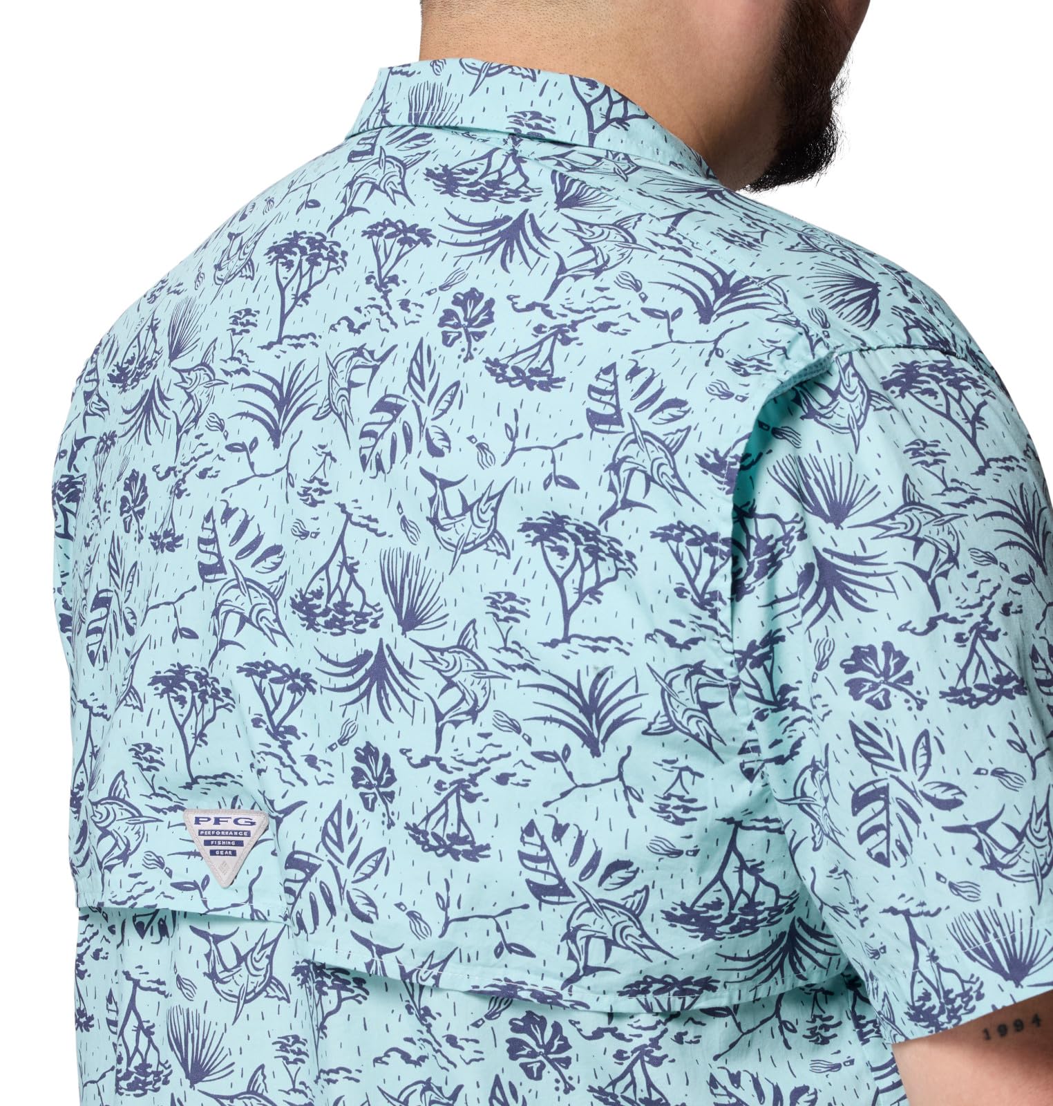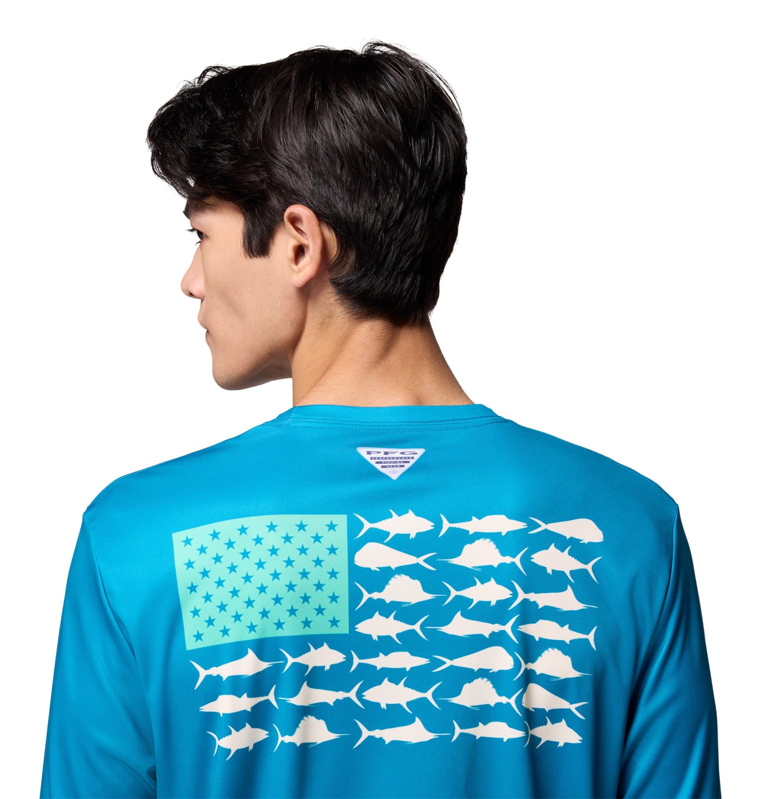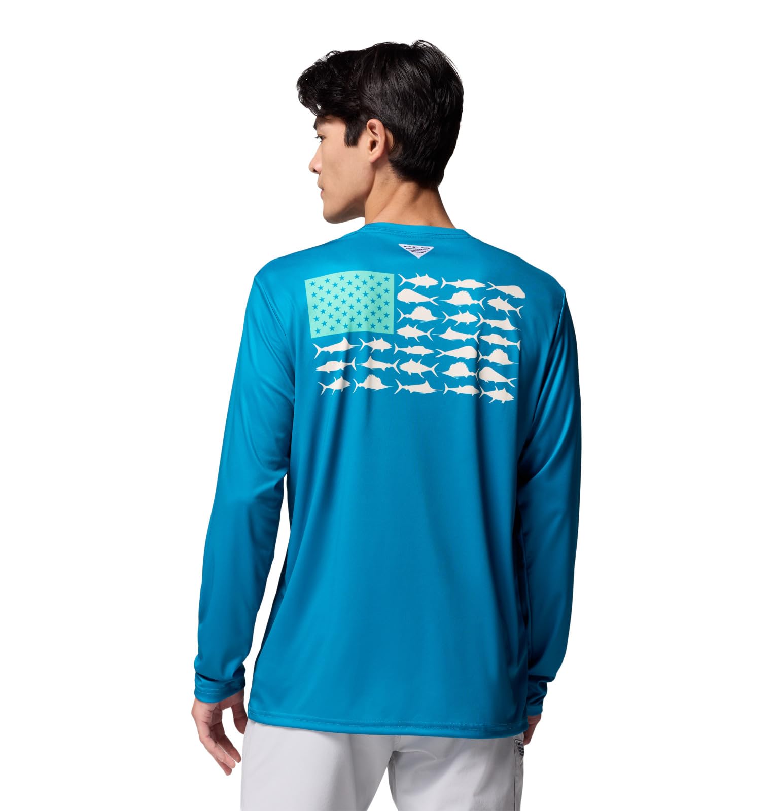 Columbia Mens Terminal Tackle PFG Fish Flag Long Sleeve, Blue Echo/Lemon Wash Offshore Slam, X-Small