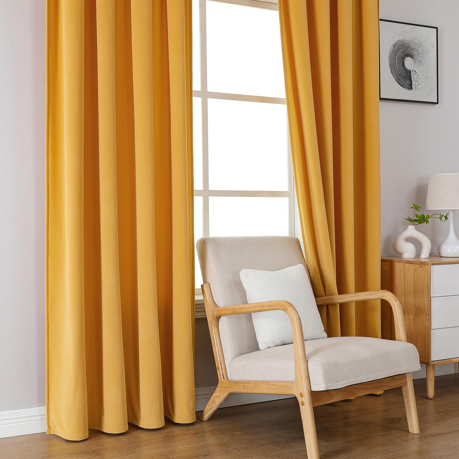 Joydeco Yellow Velvet Curtains 84 inch Length 2 Panels, Luxury Blackout Rod Pocket Thermal Insulated Window Curtains, Super Soft Room Darkening Drapes for Living Dining Room Bedroom,W52 x L84 inches